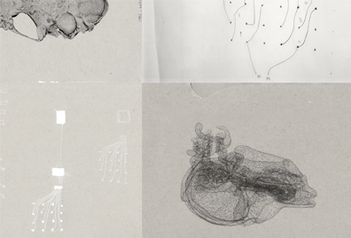 états provisoires (Vertebrata) déploie un inventaire d'objets dérivés de données tomographiques provenant de spécimens de collections d'histoire naturelle. Des animations de lumières et d'ombres — images en train de se faire — font écho à des procédés de montage vidéo ou cinématographique. Il s'agit aussi d'un projet/laboratoire dans lequel les différents éléments peuvent évoluer et se modifier en cours d'exposition, explorant ainsi les possibilités d'assemblage et de ré-assemblage de fragments, en lien avec l’idée de préservation d'une expérience de la nature. »